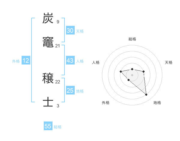炭竈 穣士さんの総格は55画の1点!