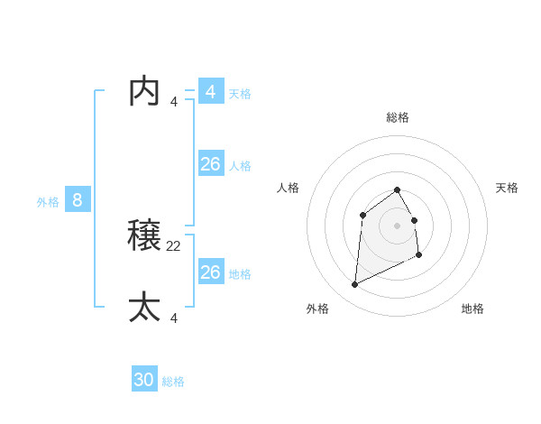内 穣太さんの総格は30画の2点!