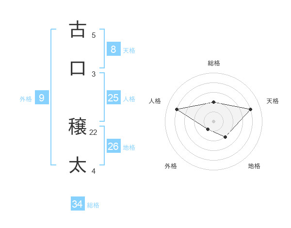 古口 穣太さんの天格は8画の4点!