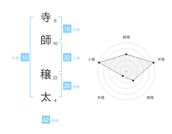 寺師 穣太さんの総格は42画の3点!