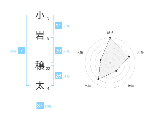 小岩 穣太さんを姓名の画数から五運を鑑定