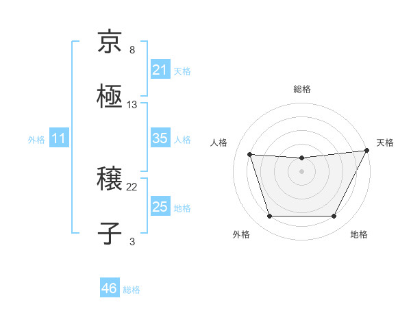 京極 穣子さんの天格は21画の5点!