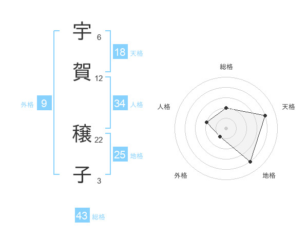 宇賀 穣子さんを姓名の画数から五運を鑑定