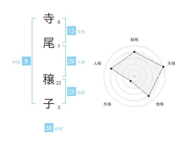 寺尾 穣子さんの総格は38画の4点!