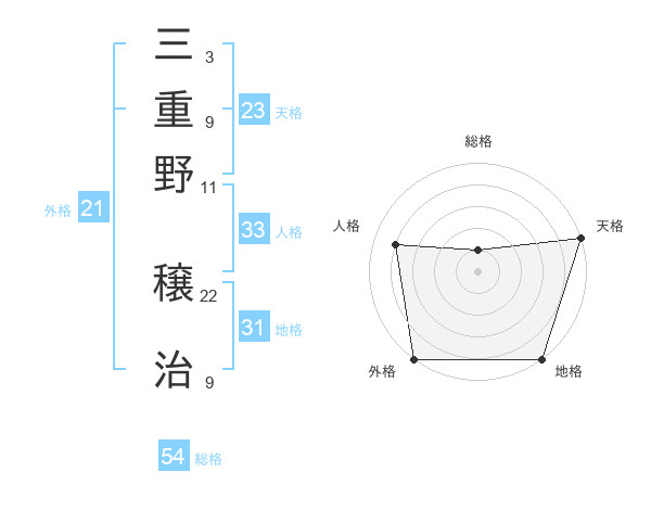 三重野 穣治さんの天格は23画の5点