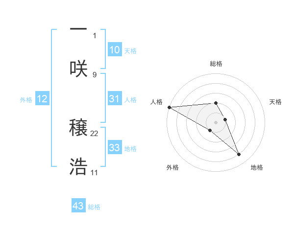 一咲 穣浩さんの総格は43画の2点!