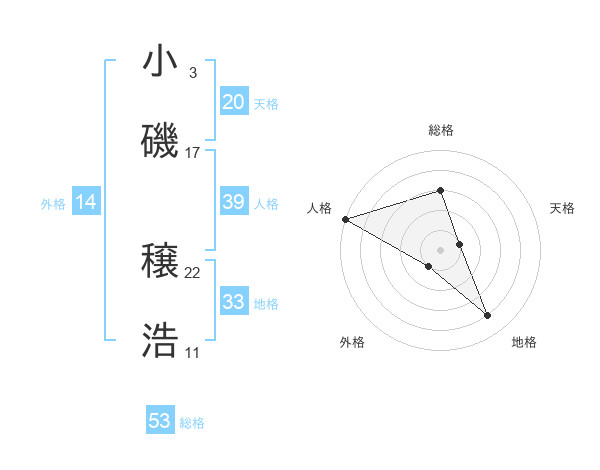 小磯 穣浩さんの総格は53画の3点!