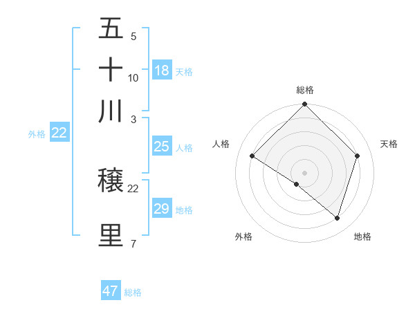 五十川 穣里さんを姓名の画数から五運を鑑定