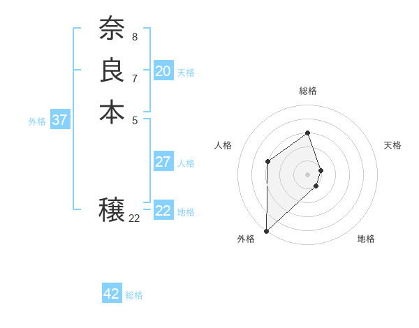奈良本 穣さんの総格は42画の3点!