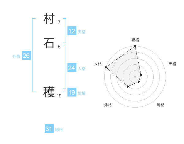 村石 穫さんの総格は31画の5点!
