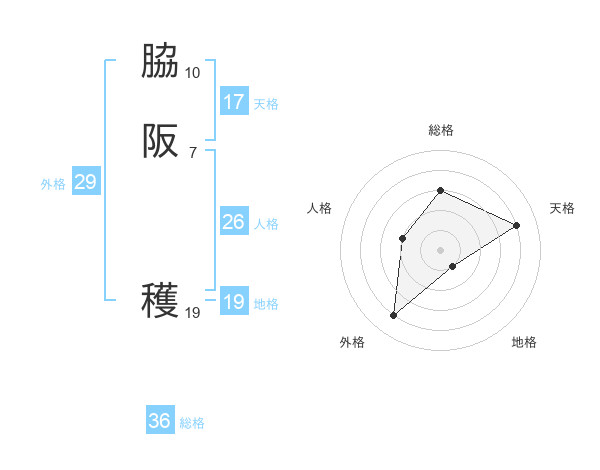 脇阪 穫さんを姓名の画数から五運を鑑定