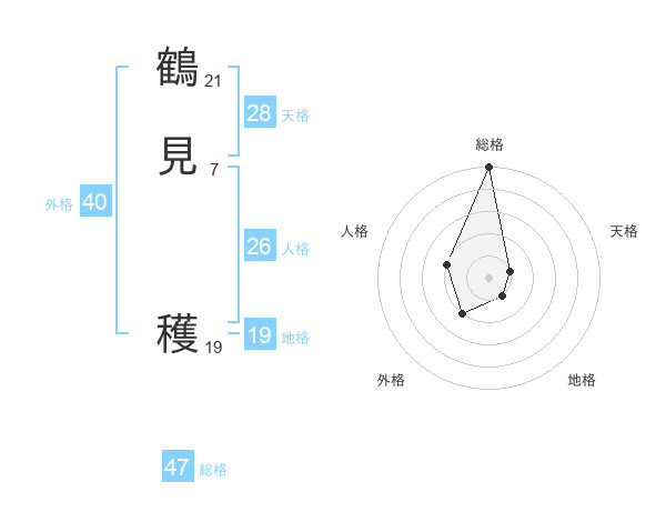 鶴見 穫さんの総格は47画の5点!