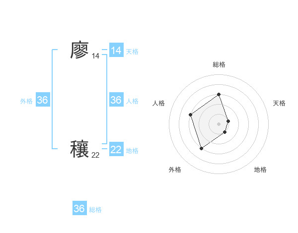 廖 穰さんの外格は36画の3点!
