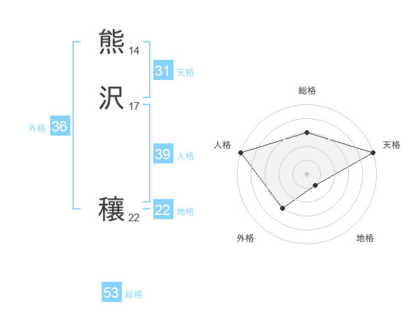熊沢 穰さんの天格は31画の5点!