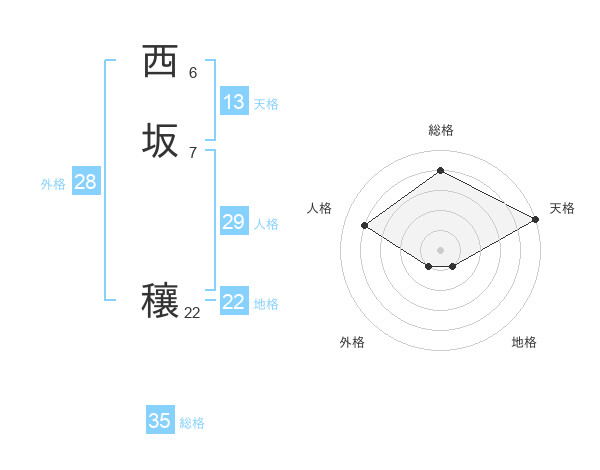 西坂 穰さんを姓名の画数から五運を鑑定