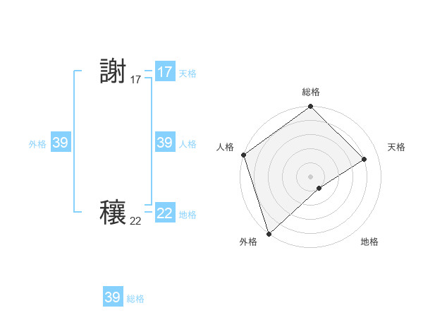 謝 穰さんの総格は39画の5点!