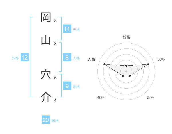 岡山 穴介さんを姓名の画数から五運を鑑定