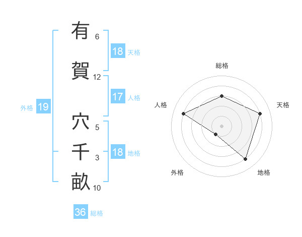 有賀 穴千畝さんを姓名の画数から五運を鑑定