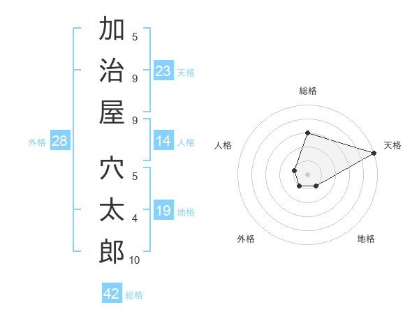 加治屋 穴太郎さんの天格は23画の5点