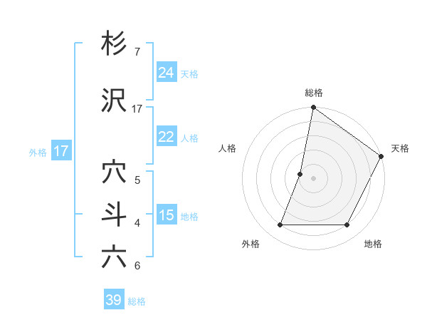 杉沢 穴斗六さんを姓名の画数から五運を鑑定