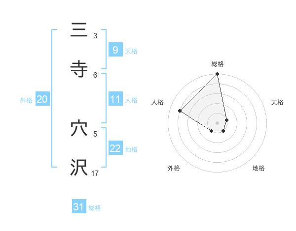三寺 穴沢さんの総格は31画の5点!