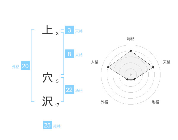 上 穴沢さんの総格は25画の4点!