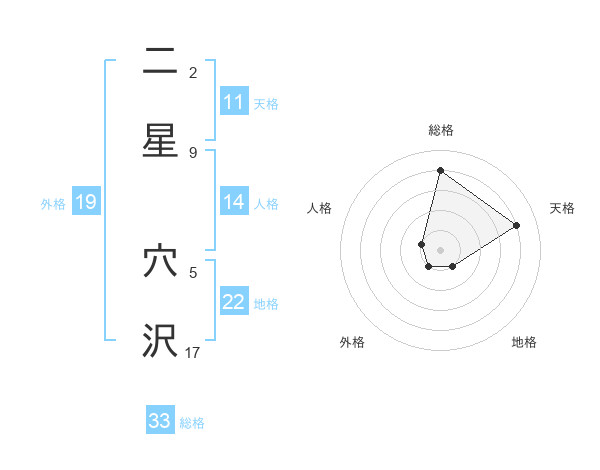 二星 穴沢さんを姓名の画数から五運を鑑定