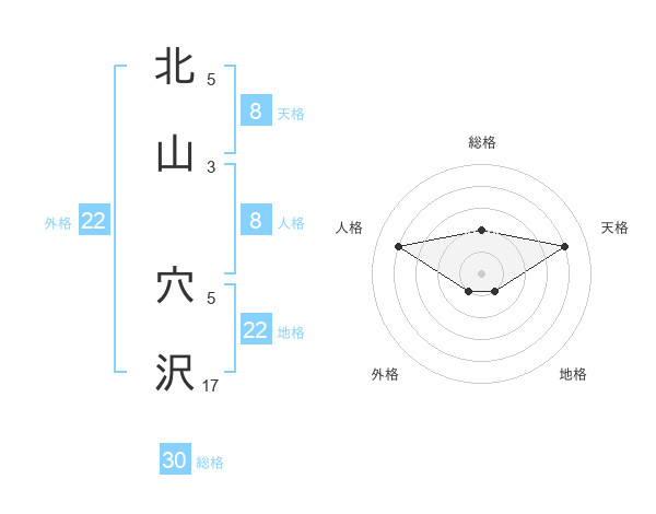 北山 穴沢さんを姓名の画数から五運を鑑定
