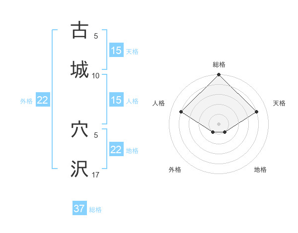 古城 穴沢さんを姓名の画数から五運を鑑定