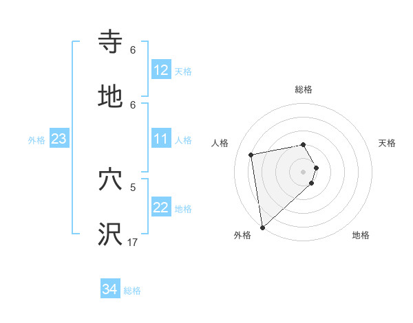 寺地 穴沢さんの地格は22画の1点!
