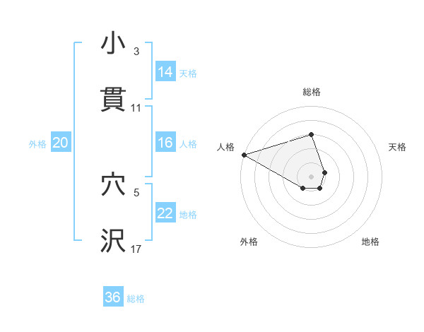 小貫 穴沢さんの地格は22画の1点!
