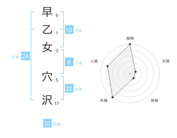 早乙女 穴沢さんの総格は32画の5点
