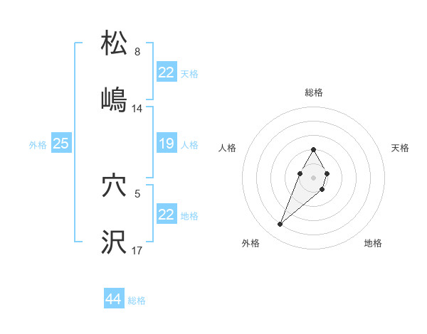松嶋 穴沢さんの地格は22画の1点!