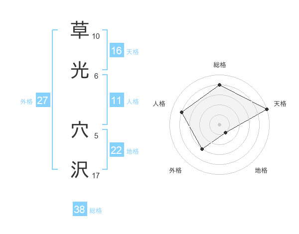 草光 穴沢さんの総格は38画の4点!