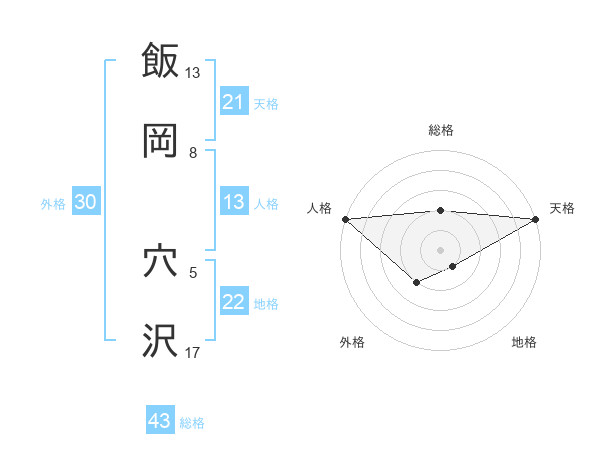 飯岡 穴沢さんの地格は22画の1点!