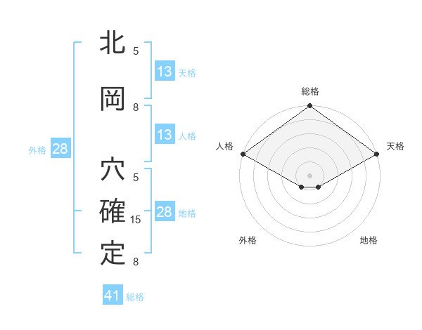 北岡 穴確定さんを姓名の画数から五運を鑑定