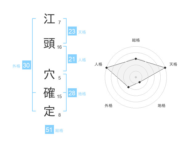 江頭 穴確定さんを姓名の画数から五運を鑑定