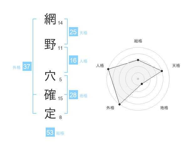 網野 穴確定さんを姓名の画数から五運を鑑定