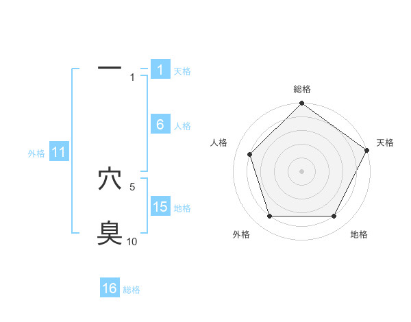 一 穴臭さんの総格は16画の5点!