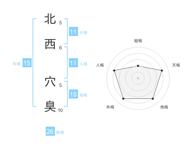 北西 穴臭さんを姓名の画数から五運を鑑定