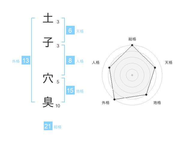 土子 穴臭さんの総格は21画の5点!