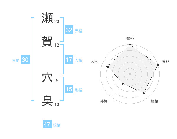 瀬賀 穴臭さんの総格は47画の5点!