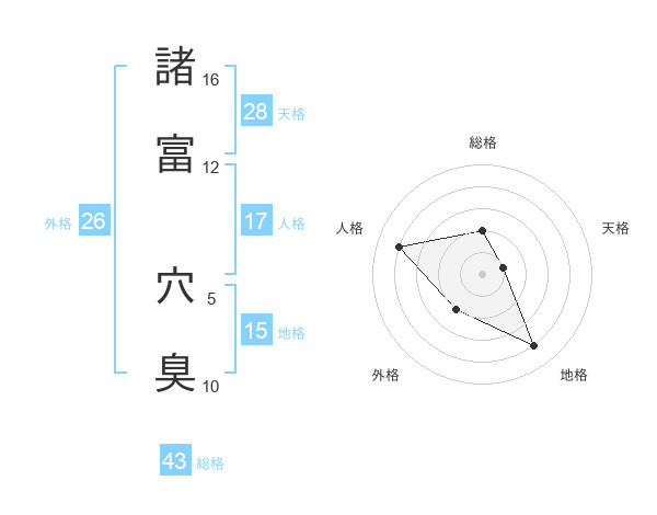 諸富 穴臭さんの総格は43画の2点!