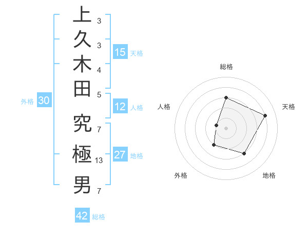 上久木田 究極男さんの総格は42画の3点