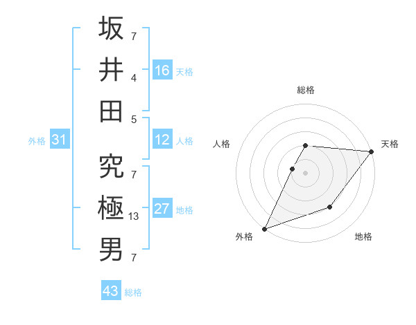坂井田 究極男さんを姓名の画数から五運を鑑定