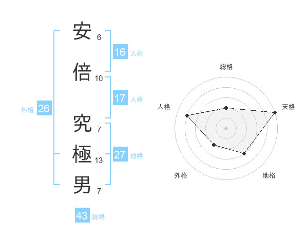 安倍 究極男さんを姓名の画数から五運を鑑定