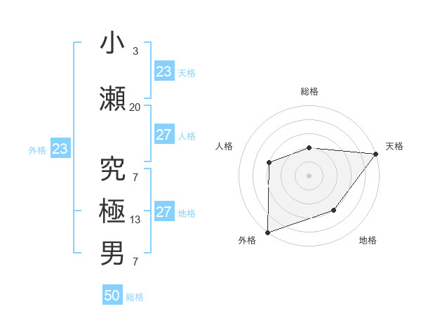 小瀬 究極男さんの天格は23画の5点!