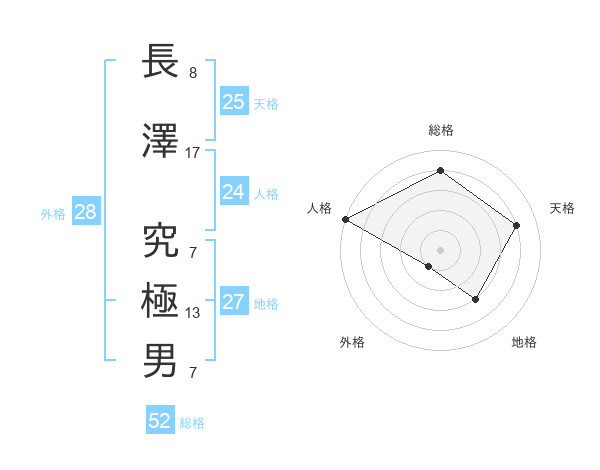 長澤 究極男さんを姓名の画数から五運を鑑定