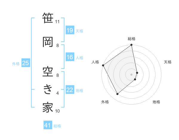 笹岡 空き家さんを姓名の画数から五運を鑑定