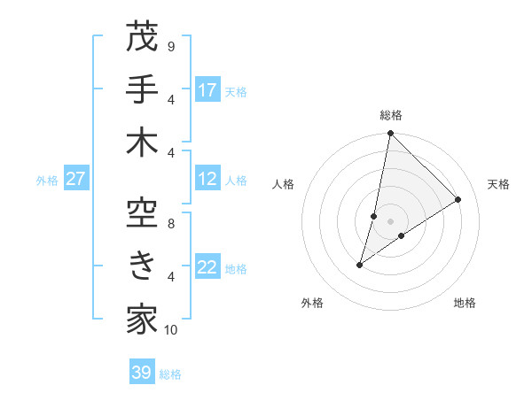 茂手木 空き家さんの総格は39画の5点!